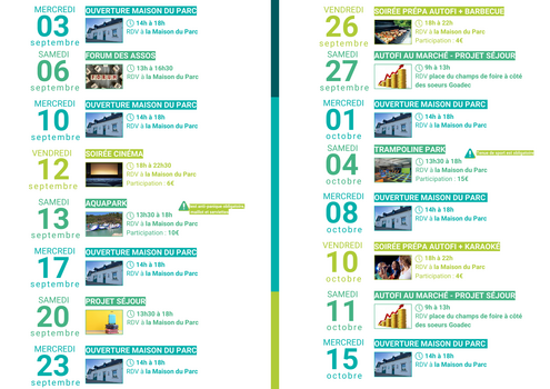 Des programmes d’activités sont également proposés : des sorties, des soirées, des activités manuelles et/ou des ateliers (couture, cuisine, bois, peinture…), des séjours, des stages…