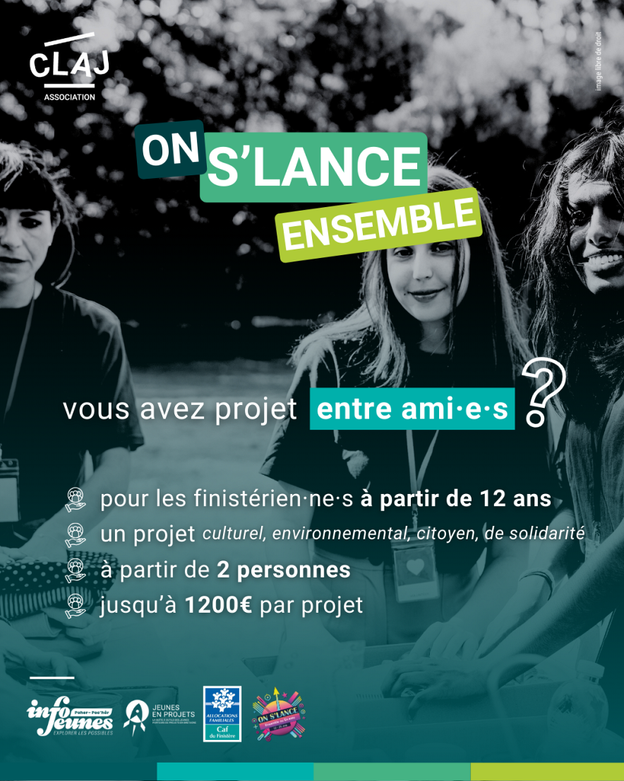• Ensemble Pour tous les jeunes de 12-21 ans : soutenir des projets à dimension culturelle, environnementale, citoyenne ou de solidarité internationale (projet humanitaire). Une aide financière qui peut représenter jusqu’à 80% du budget, dans la limite de 1200€ . Il faut habiter le Finistère et former un groupe de deux jeunes au minimum .