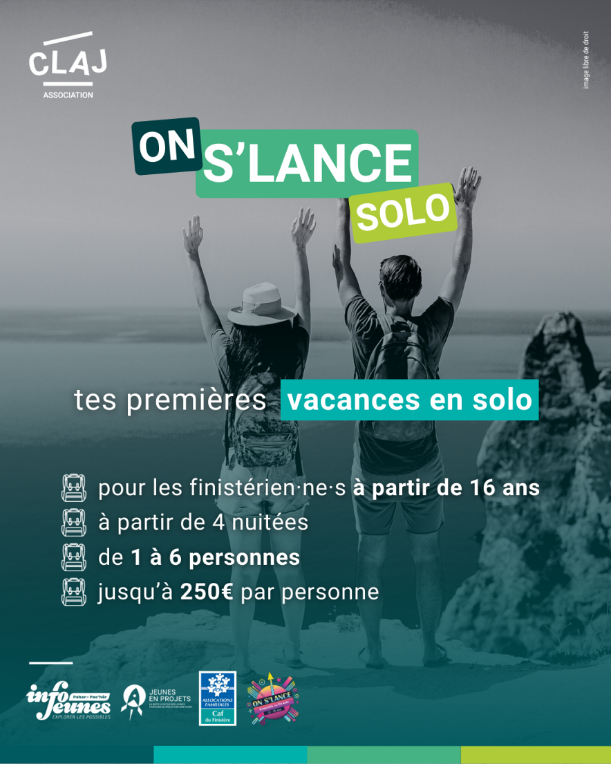 • Solo Pour tous les jeunes de 16-21 ans : aider le départ en vacances, en autonomie des jeunes, en France ou en Europe. Le séjour doit durer un minimum de 4 nuits, en solo ou par groupe de 6 jeunes maximum et se faire en autonomie . L’aide peut aller jusqu’à 250€ par personne.