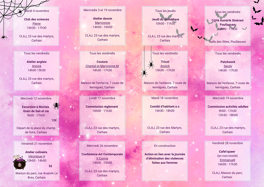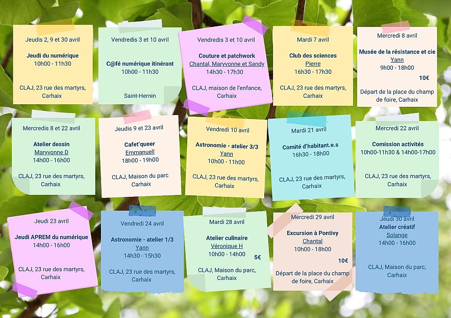 Les ateliers et sorties sont organisés lors du comité d’habitantes et d’habitants qui a lieu tous les derniers mardis de chaque mois, chacune et chacun est libre de venir proposer et échanger lors de cette rencontre.